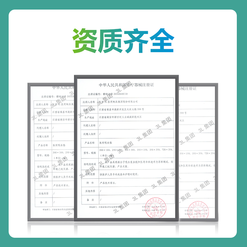 医用吸水垫:采用高分子吸水复合纸和医用非织造布制成。供医护人员手术或基本护理时使用。