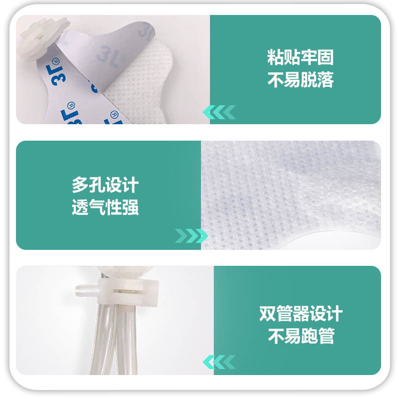医用鼻贴:由无纺布、医用压敏胶、夹管器、隔离纸制成。供需固定输氧管或胃管的病人使用。