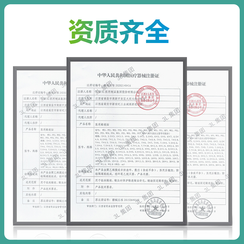 医用输液贴:由聚乙烯膜或非织造布、敷芯(含或不含)、医用压敏胶、防粘隔离纸组成。供临床输液、输血时保护输液输血针孔,固定导管和针柄。